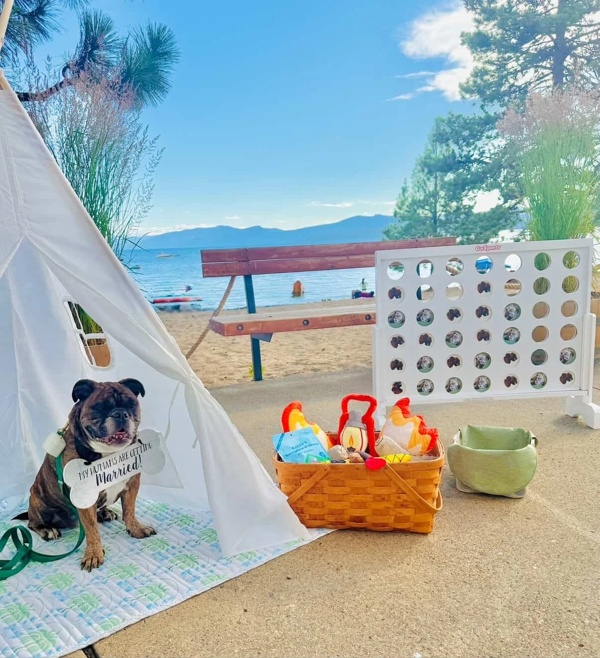 Behind the scenes, we are working diligently to ensure your dog stays cool and hydrated during the hot outdoor summer weddings, and any anxieties are managed accordingly so that your dog has the best day ever! Our entire team is pet CPR and first aid certified, and they always carry a pet first aid kit.