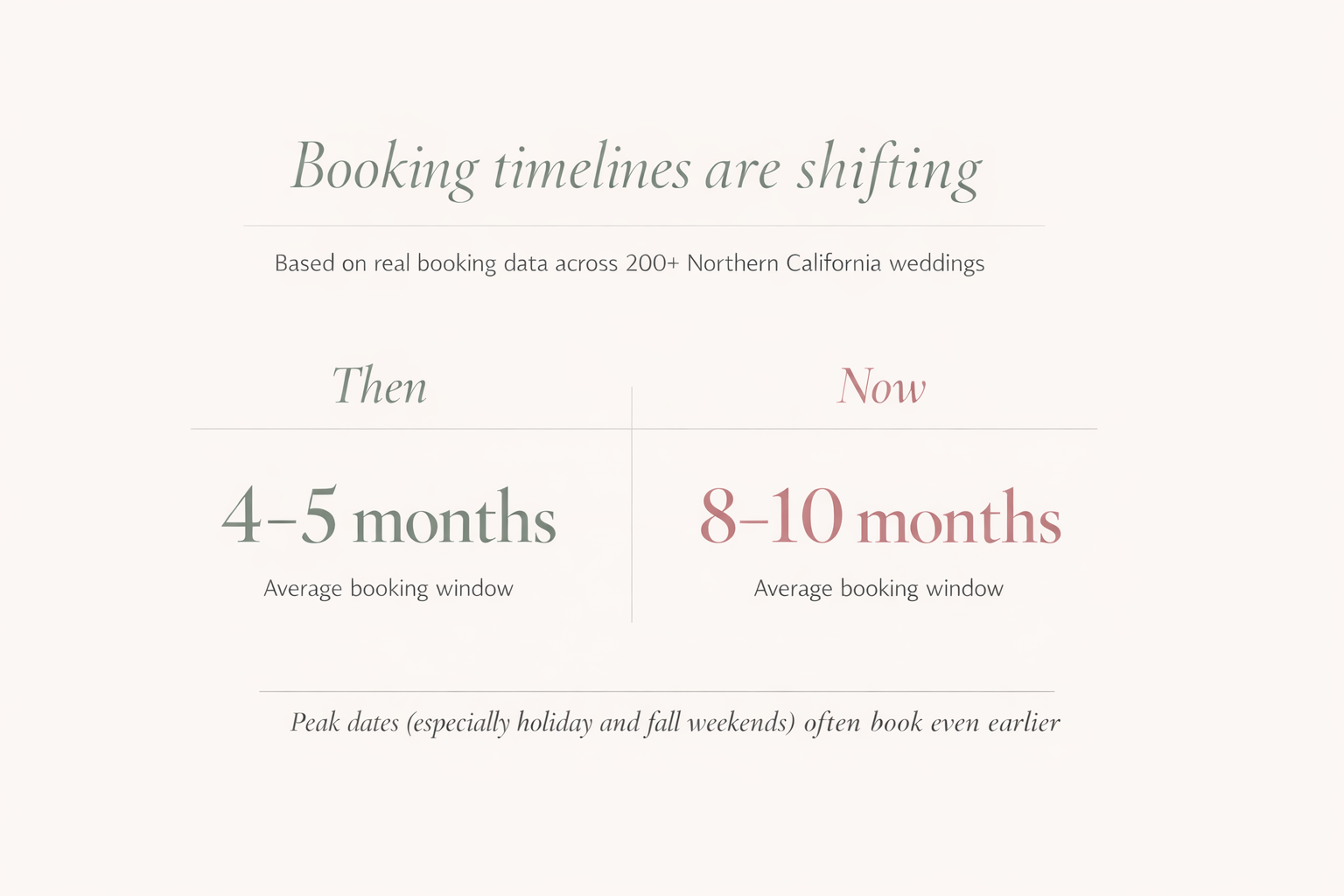 That’s not speculation, it’s based on real booking patterns across hundreds of weddings we’ve supported throughout Northern California.